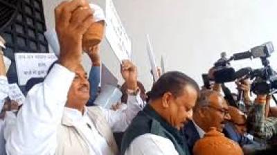‘सरकार कर्ज में डूबी’, विपक्ष ने अनोखे अंदाज में जताया विरोध