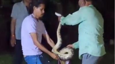 रेस्ट हाउस में हड़कंप: शिकार की खोज में निकला विशाल अजगर पकड़ा गया, रेस्क्यू के बाद दिखा डरावना आकार