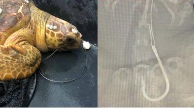 फिश हुक में फंसकर कछुए की जान पर बन आई, रेस्क्यू टीम ने किया रोमांचक बचाव