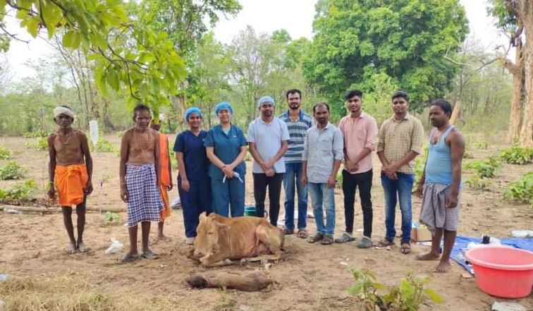 पशु चिकित्सकों ने सुदूर ग्राम पदनार के जंगल में सिजेरियन ऑपरेशन कर बचाई गाय की जान