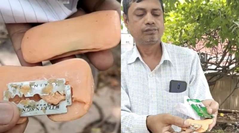 सोमवार के दिन अंगद सिंह का 10 साल का बेटा अंशु जब नहाने गया तो नया पैकेट खोलकर साबुन लेकर गया था. नहाते समय साबुन से उसे कट लगा और चेहरे पर खून निकल आया. इस तरह खून देख कर बच्चा घबरा गया और उसने अपने माता पिता को आवाज लगायी. बच्चे की आवाज सुन जब अंगद अपनी पत्नी के साथ उसके पास पहुंचे तो चेहरे पर खून देख डर गए. जब साबुन को काट कर देखा तो उसमे अंदर ब्लेड निकली.