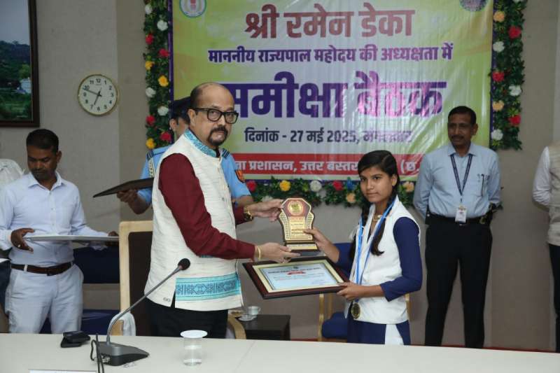 राज्यपाल रमेन डेका समीक्षा बैठक के उपरांत माध्यमिक शिक्षा मण्डल द्वारा आयोजित 10वी एंव 12वीं बोर्ड परीक्षा की प्रावीण्य सूची में स्थान बनाने वाले विद्यार्थियों को सम्मानित किया। बोर्ड परीक्षा में कक्षा 12वीं में विकासखण्ड कांकेर के अखिल सेन ने 98.20 प्रतिशत और पखांजूर तहसील की इशिका बाला ने कक्षा 10वीं में 99.16 प्रतिशत अंक प्राप्त कर राज्य स्तरीय टॉप टेन में स्थान बनाकर जिले को गौरवान्वित किया है। राजपाल ने इन मेधावी विद्यार्थियों को बधाई एवं शुभकामनाएं दी।