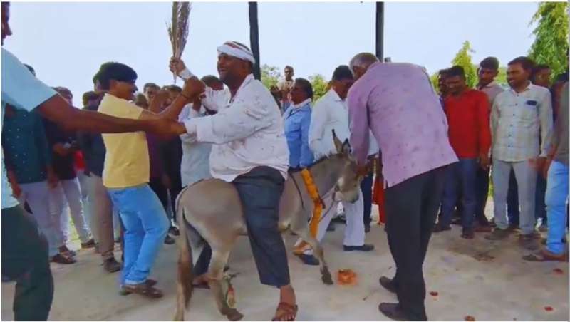 गधे पर उल्टा बैठाकर कराई परिक्रमा