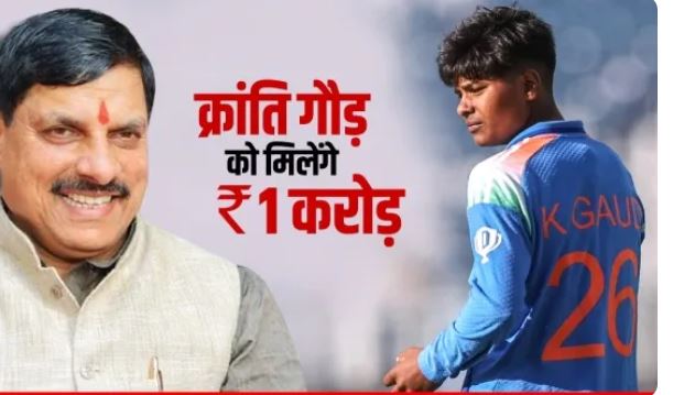 CM मोहन यादव का बड़ा ऐलान — क्रिकेटर क्रांति गौड़ को मिलेगा 1 करोड़ रुपये का पुरस्कार