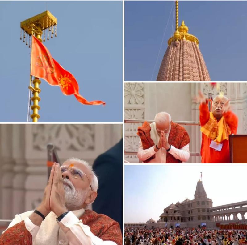शुभ मुहूर्त में पीएम मोदी ने किया राम मंदिर शिखर पर ध्वज आरोहण