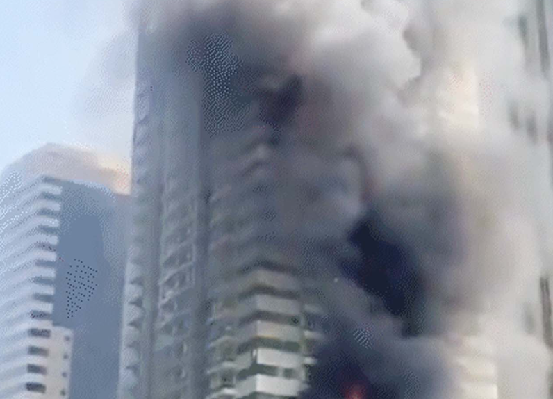 दुबई की 90 मंजिला इमारत में लगी आग, मरीना टॉवर के पास धुंआ-धुंआ फैला