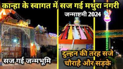 मथुरा । मथुरा में श्रीकृष्ण जन्मोत्सव का उल्लास पूरे ब्रज में हिलोर ले रहा है। कान्हा के स्वागत को ब्रज स्वर्ग सा सजा गया है। सोमवार मध्यरात्रि 12 बजे घर-घर कन्हाई...