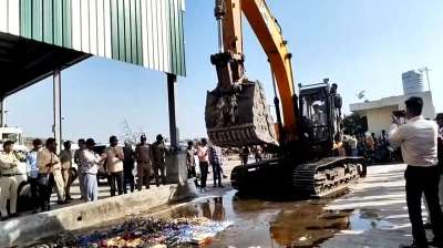 50 लाख की अवैध शराब पर चला बुलडोजर, 7 थानों द्वारा जब्त 24000 लीटर शराब नष्ट